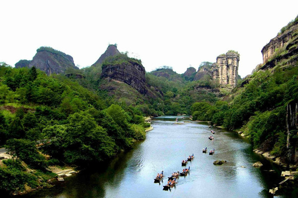 早餐后,乘【高铁/动车】(历时约3小时)赴武夷山。前往有“碧水丹山”、“奇秀甲东南”之美誉的武夷山风景 名胜区,该景区曾被国际旅游组织执委会主席巴尔科夫人称为“世界环境保护的典范”“山秀水清如玉,六六奇峰 翠插天”构成了奇幻百出的武夷山水之胜。