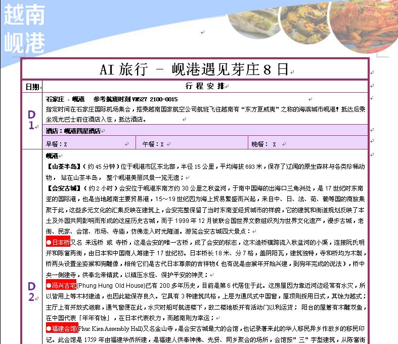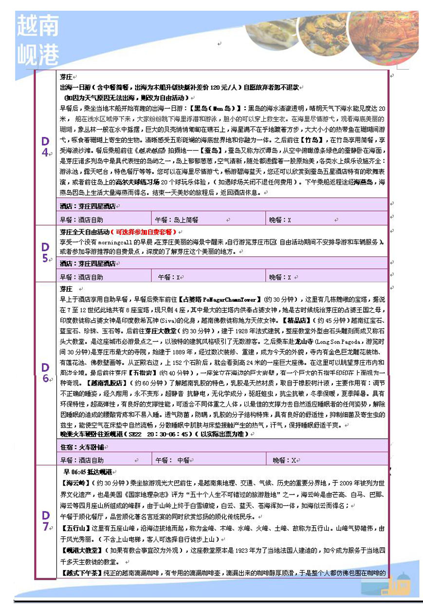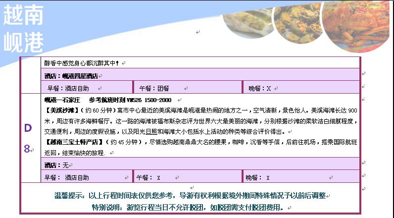 交 通:石家庄往返岘港的机票(含机场建设费和燃油附加费),岘港-芽庄-岘港往返火车。
