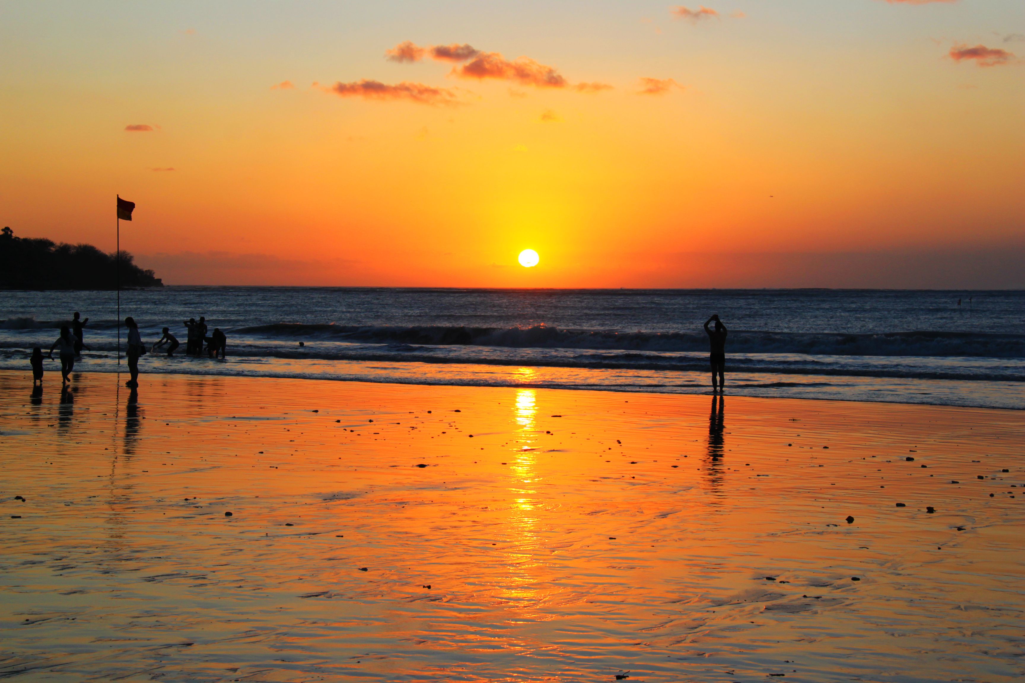 【金巴兰海滩】以其壮观的海上日落美景而闻名,曾被评为十大日落之一,狭长的海滩似乎没有终点,面对着无尽的海鲜,脚踏软绵绵的沙,如漫步在天堂一般,每当夕阳西下,落日就像沉入大海一样,短暂却无比美妙和壮观,天色暗下行人如剪影,又是另一幅风景画。